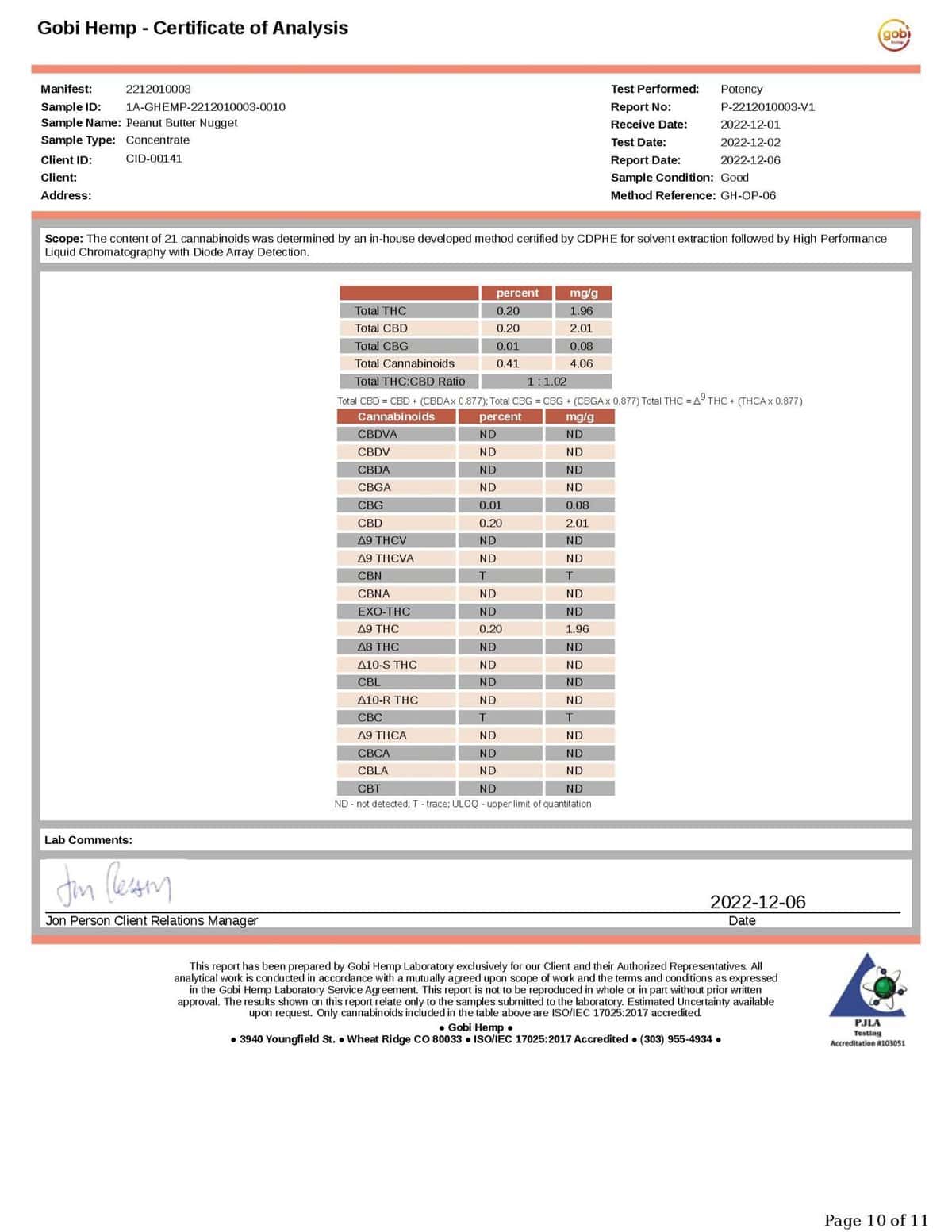 Get ready to indulge in a peanut butter lover’s dream with our Peanut Butter Nuggets! Each delectable bite is packed with a 1:1 ratio of 30MG. 15MG of THC and 15MG of CBD. Giving you a perfectly balanced high that’s just right. (Photo is for promotional use only. product may differ. You are purchasing one (1) peanut butter nugget.)