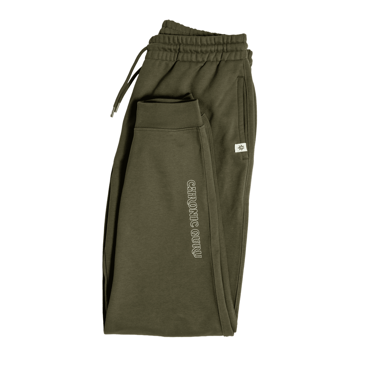 Running down the leg, “Chronic Guru” is embroidered in tonal thread—a calm but confident nod to the culture. The military green color keeps things grounded and pairs naturally with the Higher Society Crewneck, or anything else in your weekly lineup.