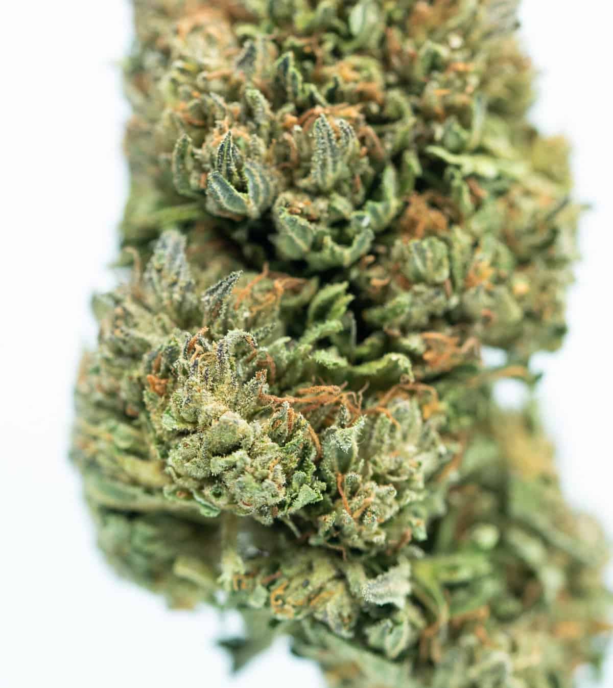 The buds of Bubba Kush are dense and chunky, featuring deep green hues that sometimes have hints of purple. In addition, a thick coating of frosty trichomes covers the buds, giving them a sticky and potent appearance. The vibrant orange pistils add an eye-catching contrast, making this strain visually appealing.