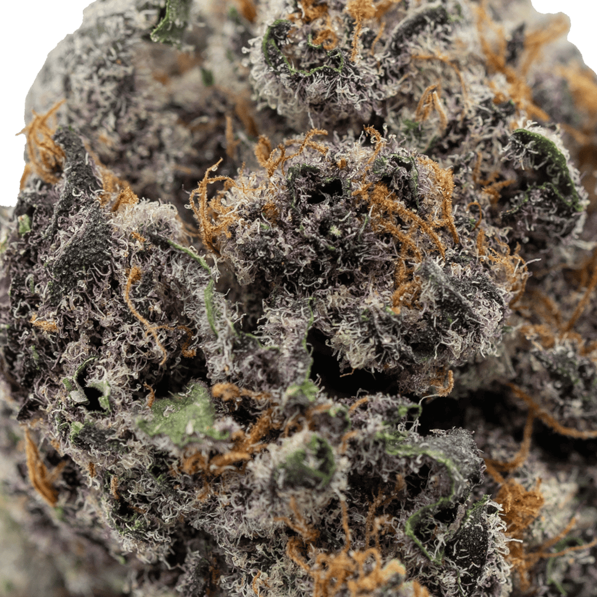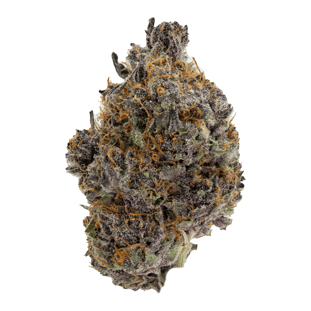 Not only does Tropicana Cookies deliver exceptional effects, but it also captivates with its striking looks. This strain features dense, heart-shaped nugs adorned with dark purple hues, vibrant green accents, and bright orange hairs. Moreover, a heavy coating of trichomes gives each bud a frosty, potent appearance.