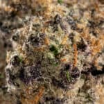 Caribbean Breeze features dense, lime-green buds accentuated by golden-orange pistils and a thick layer of frosty trichomes. Its vibrant hues and sticky resinous coating make it a visually striking strain that lives up to its exotic name.